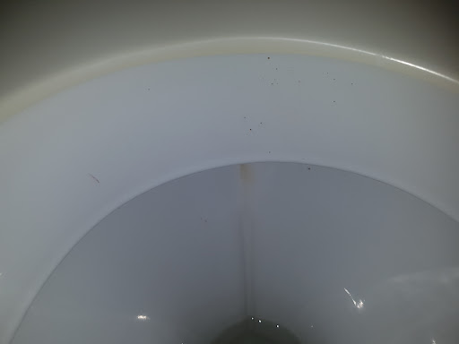 Das Zimmer selbst roch ebenfalls alt und modrig. Als erstes fielen uns in wirklich ALLEN Zimmerecken und an der Decke etliche alte Spinnenweben und Spinnen und zahlreiche zermatschte Mücken auf. Das Bett zeigte sich zwar ordentlich gemacht, das Laken war allerdings fleckig. Die Handtücher, die ordentlich gefaltet auf dem Bett lagen waren ebenfalls fleckig. In der Lampe war die Glühbirne defekt. Das Bad war einfach nur wiederlich. Überall waren lange schwarze Haare, das Klo einfach nur vom Vorgänger verdreckt und verkalkt, scheinbar nie richtig gesäubert worden. Die Klospülung funktionierte nicht richtig, so dass wir die Duschbrause aus der Dusche nahmen um zu "spülen". Das große Geschäft hätte man hier nicht verrichten können. Das Wasser ist so eisenhaltig, daß man beim Mund ausspülen den Geschmack hatte, als würde man mit Blut ausspülen, selbst das Trinkwasser vom Hund war rot. Wären wir aufgrund Silvester nicht auf eine ruhige Unterkunft angewiesen, wären wir sofort wieder gefahren. Wir hatten tatsächlich 2 Zimmer und in beiden war die Sauberkeit gleich null, in beiden die Bäder total verdreckt und versifft, überall Spinnen und Spinnenweben.