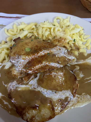 Wir waren mit 3 Personen dort essen, der ungarische Gulasch war Preis Leistung annähernd ok und lecker, die anderen zwei Gerichte (Hänchenbrust mit Spätzle) waren die selben, Gericht 1 war mit dem Gulasch gleichzeitig da, Gericht 2 hat fast 20 Minuten länger gedauert, ein Vorteil : man wusste das es frisch zubereitet wurde ;) Cocktailpreise finde ich etwas zu hoch für die Lage und das Ambiente genauso wie die Herrichtung des Cocktails selber. Das Bier war Preismässig dafür fair. Ich habe gehofft das es dort gut bürgerliches Essen gibt statt immer „diese Dönerbuden“ aber die Preise finde ich etwas anpassungsbedürftig, bei den Preisen müsste bei den Gerichten zb. frische Spätzle sein etc. Nichts desto trotz war es lecker und die Bedienungen (trotz derzeit noch fehlenden Deutschkenntnissen) sehr sehr freundlich und aufmerksam. Ich denke es ist ausbaufähig. Das Ambiente ist voll in Ordnung für die Lage/„Kneipe“ , könnte man irgendwann mal in Angriff nehmen. Wir werden es irgendwann noch...