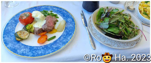 Doppeltes Rinderfilet | Sauce Béarnaise | Grilltomate | buntes Gemüse der Saison | knackige Blattsalate | Kartoffelgratin | Röstkartoffeln
