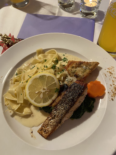 OK wer Lust hat in einer eiskalten und mit Schimmel an der Decke bedeckten Halle, so nenne ich mal den Saal in dem wir saßen, zu essen ist hier gut aufgehoben. Manche Gäste saßen in Jacken am Tisch und haben gegessen, so wie ich auch. Das geht mal gar nicht. Vielleicht hätte man den Ofen der da stand, am Morgen mal anmachen sollen. Ich hatte ein Jäger Schnitzel mit sage und schreibe 36 Pommes. Die Essen der anderen und meins waren so lala. Der Service war sehr freundlich. Wäre schön wenn es in der Speisekarte ersichtlicher wäre das bei den Gerichten kein Beilagen Salat dabei ist und man ihn gesondert bestellen muss. Wir werden das aber nicht mehr erleben, denn wir kommen bestimmt...