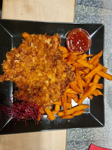 Mein Putenschnitzel mit Süßkartoffelpommes war sehr gut, würde ich auf alle fälle wieder bestellen. Alle am Tisch waren zufrieden!