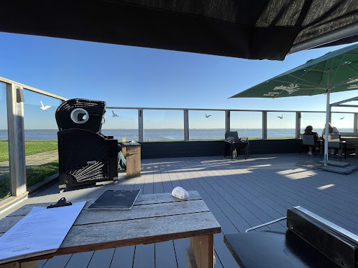 Read moreMeine Kolleginnen und ich waren leider nicht zufrieden. Wir hatten zu um 19.30 Uhr einen Tisch reserviert. Uns wurde dann ein Tisch, mitten im Gang unmittelbar am Tresen ( ständiger "Durchgangsverkehr") angeboten. Auf Nachfrage erhielten wir einen anderen Platz , womit ich an dieser Stelle die Flexibilität loben möchte. Wir saßen dann am Fenster, mit eigentlich Blick auf den Deich, die Schafe und die Elbe. Aber nein, die gesamte Fensterfront war von einer, zugegebenermaßen, sehr hübschen Terrasse zugebaut. Sehr schade, denn der Ausblick " der alten Strandhalle" war immer ein Highlight. Na gut, im Sommer ist es dort sicherlich sehr schön, aber leider sind es bei uns in Norddeutschland nur wenige Wochen. Nach relativ kurzer Zeit wurden uns die Speisekarten , für drei Personen zwei Karten, und eine Getränkekarte, gebracht. Desweiteren wurde uns ein Spargelbuffet angeboten ( ohne Preisangabe und Dauer), wofür eine meiner Kolleginnen und ich uns entschieden. Das Buffet war sehr übersichtlich mit wenig Auswahl. Ein Mini- Schild wies darauf hin, dass es auf Nachfrage Spargelsuppe gibt. Leider war das Schild so klein und unscheinbar das wir es erst am Ende gesehen haben. Auch gab es keine Sauce Hollandaise am Buffet. Auf Nachfrage sagte man uns, daß diese frisch serviert würde. Das wurde sie dann auch, ein kleines Schälchen mit Fertisauce. Leider konnte das Essen, auch geschmacklich, nicht überzeugen. Der Spargel war verkocht, ist sicher Geschmackssache. Der eine mag es weich, der ander bissfest. Aber die Schweinemedallions und Minischnitzel waren leider arg trocken und ohne Soße. Als Beilagen gab es nur Rosmarinkartoffeln. Für ein Buffet recht mager. Wir hatten uns zu Beginn nicht nach dem Preis für das Buffet erkundigt und es stand auch nirgendwo ausgeschrieben, auch nicht in der Speisekarte. Selber Schuld, sind dann aber bei 49€ pro Person, aus allen Wolken gefallen. Die Bedienung schien es gemerkt zu haben und sagte dann, "Naja, ist ja all you can eat" (in unserem Fall von ca. 19 45 - 21.00) Wir haben es wertlos zur Kenntnis genommen. Fazit: Vom Ambiente eine sehr schöne Lokalität mit freundlichem Personal. Der Rest hat uns leider nicht gefallen. V.a. deutlich überzogener Preis für ein Spargebuffet, dieser Qualität!! Eine bessere Information über das Buffet ( Preis, Dauer, Spargelsuppe/ Sauce Hollandaise auf Nachfrage) wäre sehr hilfreich gewesen Die alte Strandhalle, mit Harry als Koch, hat mir deutlich besser gefallen. Das haut auch die Renovierung nicht raus! Zum essen werde ich wohl nicht mehr kommen. Aber eins habe ich dazugelernt: Immer vorher nach dem Preis fragen!...