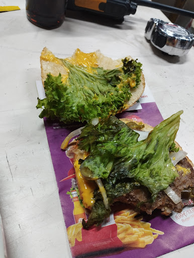 Jetzt haben wir uns wenigstens aufs Essen gefreut und hier kam nochmal die größte Enttäuschung. Pommes kalt und labrig, Mayonnaise war schon stückig, vermutlich, weil sie ne Stunde unter dem einen warmen Burger lag, Burgerbrötchen hart, vermutlich, weil auch über ne Stunde alt und der Salat? Sehr auf dem Foto selbst. Knackig grün sieht das Blatt oben drauf aus und das darunter sieht, nett gesagt, garnicht mehr gut aus.