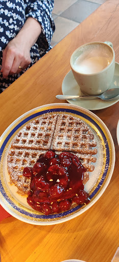 This café has a friendly informal ambience with its pic'n'mix assortment of tables, chairs, sofas, benches, books and so forth. You feel you could relax over a coffee without being hassled. And good coffee it is, too. However, I wanted lunch and that was a little bit more disappointing; a throwback to the high street vegetarian eateries you used to get in the 1980s when this sort of thing was a newish phenomenon. It's a simple dish-a-day here but cracked (bulgur?) wheat with a chopped vegetable and tomato ragout felt a bit dutiful. Especially so with its far too ample side of raw shredded carrot, the classic "carrot salad", a real old (and always somewhat indigestible) portion of vegetarian culinary history. Tbh, the soup looked a better option. The hot sour cherry and cream crêpe was really good though. And, as I say, the coffee's excellent and the vibe...