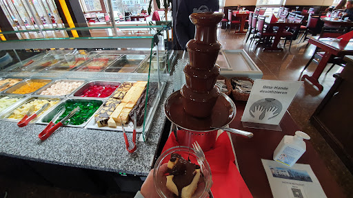 Read moreWir waren heute das 1. Mal in dem Restaurant. Angekommen um 13.30 Uhr freuten wir uns auf das Buffet. Nachdem eine freundliche Bedienung die Getränkebestellung aufgenommen hatte, gingen wir zum Buffet. Leider waren viele Speisebehälter bereits leer. Erst dachte ich, dass sicherlich noch etwas nachgelegt würde, was aber leider nicht passierte. Erst als ich die Bedienung darauf aufmerksam machte, dass auch kein Entenfleisch mehr da sei, wurde Ente nachgelegt, alle anderen Behälter blieben aber leer. Auf Grund der geringen Fleischauswahl, bediente ich mich am Frischfleisch was von der Küche gebraten wurde. Geschmacklich war das Essen in Ordnung, leider konnten wir ja nur wenig fertige Fleischgerichte probieren, die im Buffetpreis enthalten waren. Von 4 angebotenen Eissorten war auch der Erdbeerbehälter total leer, Vanille war noch ein wenig vorhanden, was man zusammen kratzen musste. Ich für meinen Teil war doch sehr enttäuscht. Selbst beim abschließenden Toilettengang war kein Toilettenpapier mehr vorhanden. Natürlich mussten wir Pro Person 2 € extra für das frische Fleisch zusätzlich zum Buffetpreis zahlen. Bei der Beschwerde beim Zahlen antwortete die Bedienung, dass es mal vorkommen könnte, dass die Behälter leer sein, bei Nachfrage würden die Behälter aber wieder gefüllt werden. Das konnte ich nicht sehen, obwohl ein Koch den Entenfleischbehälter austauschte, hätte er sehen müssen, das der Curryreisbehälter und diverse andere Fleischgerichte völlig leer waren, zumal das Restaurant bis 15 Uhr geöffnet hatt. Ich glaube nicht, dass ich den Weg noch mal auf mich nehme, um...