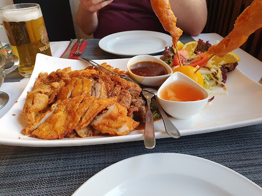 Read moreFür mich ist es stets wohltuend, ein Restaurant mit chinesischer Küche zu entdecken, das dem verbreiteten Bufett-Wahnsinn nicht folgt. Hier wird hinter unauffälligen Mauern inmitten eines Wohngebiets auf gutem Niveau chinesische Kochkunst zelebriert. Entengerichte stehen auf der nicht sehr umfangreichen (gut so!) Karte im Vordergrund, das Preisniveau ist fair, gemessen an den Portionsgrößen sogar günstig. Zartes Fleisch, knackiges Gemüse, wenngleich ich mit den Saucen bei Vor- und Hauptspeise nicht komplett zufrieden war. Tee gibt es leider nicht im Kännchen, sondern nur im Becher (Teebeutel). Der Service ist freundlich, bei gut besuchtem Haus allerdings nicht perfekt. Der Gastraum wirkt nur wenig charmanter als das spröde Äußere des Hauses. Wer mit dem Auto anreist, benötigt seeehr viel Ausdauer beim Finden eines...
