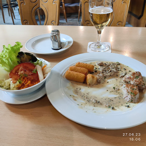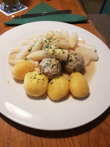 Read moreEin schönes altes Gebäude mit einem schönen Biergarten unter altem Baumbestand, im Sommer richtig schön. Mehrere Räumlichkeiten, auch für große Gesellschaften vorhanden, jedoch war das Personal mit der Bestückung des Suppenbuffets hoffnungslos überfordert. Es dauerte eine Ewigkeit, bis Brot nachgeliefert wurde, kleine Würstchen für die Kartoffelsuppe wurden garnicht mehr nachgelegt (es stand dort auch nur eine halbe Schüssel voll). Der Hochzeits- und Kartoffelsuppe schmeckte man den Brühwürfel deutlich an (sehr salzig). Die Tomatensuppe war lecker. Die Vorsorgung mit Kaffee oder Eis funktionierte am Besten, wenn man sich vor die Küche gestellt, dort direkt bestellt hat und selbst die Bestellung abgeholt hat. Die Toiletten befinden sich im EG und...