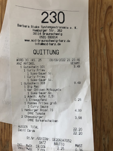 Read moreThis McDonald’s in Braunschweig is convenient and consistent. It’s clean, modern, and offers a familiar menu—plus a drive-thru at the location, which is handy for a quick bite .