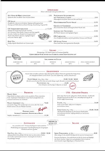 This is a very tasty high end steakhouse. The menu fits on two pages and is focused entirely on meat. There is some shellfish but it is very clear that the meat is the star. The entrés are quite expensive, especially the assorted platter which costs 25€ per person and must be ordered at least twice.