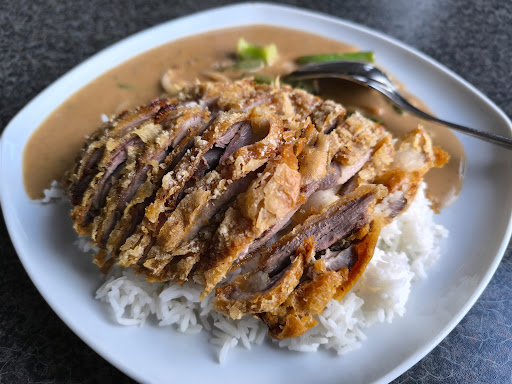 Read moreVor ein paar Tagen mal nach einem Einkauf in der Nähe Hunger bekommen, Schon lange hatte ich nicht mehr asiatische Ente gegessen. Kurz und knapp war die Begrüßung, so blieb die Konversation auch gerade mal aufs nötigste begrenzt. Ich wählte gebackene Ente mit Erdnusssoße und Reis. Ich bekam mein Essen und setzte mich in den kleinen Gastraum. Dieser könnte mal eine gründliche Renovierung gebrauchen und auch ein wenig mehr Pflege. Nun ja.... Kommen wir zum Essen: Leider muss ich feststellen, dass die Qualität etwas gelitten hat im Vergleich zu meinem letzten Besuch dort. Die Ente war zwar schön knusprig, hatte fast einen Panade-Touch aber ein wenig zu lange im Wok, dadurch etwas zu trocken vom Fleisch her. Das Gemüse in der Soße war knackig und frisch. Die Soße selbst war zwar gut im Geschmack und Konsistenz, jedoch nicht gerade warm. Der Reis war eher locker und nicht asiatypisch klebrig und leider auch nicht wirklich warm. Schade.... Trotzdem 3 Sterne - ich hab schon schlechter gegessen. Zum mitnehmen war ganz in Ordnung...