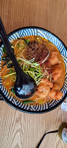 Starter kara age was ok. Main course miso ramen, miso broth nothing special, noodles in firmness fine, taste was average, chashu taste ok, ramen eggs a bit too salty, yolk too firm. Maybe our expectations were too high having tasted ramen restaurants around the world already. The service was fine. The atmosphere was really nice with the decorations. Would return if tonkotsu broth would be...