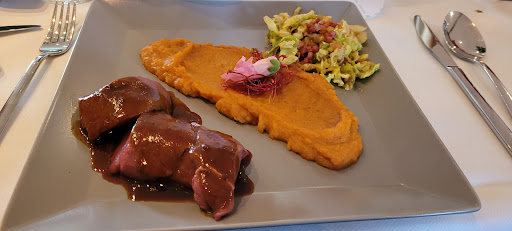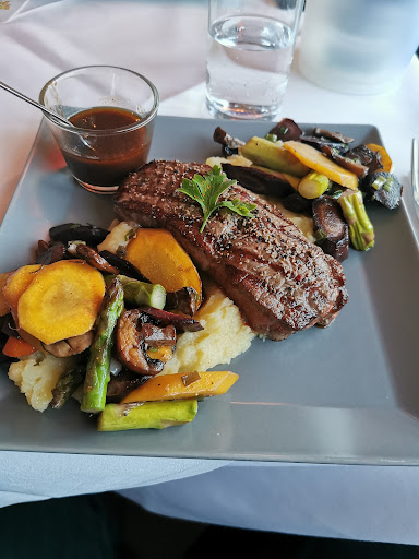 Ich habe mich für das Tagesangebot entschieden (siehe Foto) . Rumpsteak (240g) von einer deutschen Färse (=ist ein geschlechtsreifes weibliches Rind, das noch nicht gekalbt hat). Dazu gab es Kartoffelpüree, Marktgemüse und eine Jus. Das Steak habe ich Medium Rare bestellt und die Garstufe war sehr gut getroffen. Wie bei Färsenfleisch erwartet, war das Steak aufgrund der feinen Marmorierung sehr saftig und geschmacksintensiv.