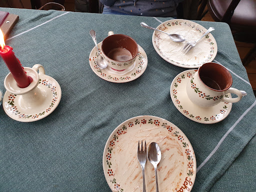 Das Ambiente ist schön, gemütlich und authentisch. Das Töpfergeschirr ist auch sehr schön und stimmig.