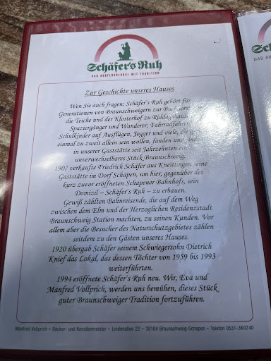 Read moreAlso , ich muss es doch mal sagen.Dieses altehrwürdige Ausflugslokal ist leider in den 80 er Jahren stehen geblieben. Keine Kartenzahlung möglich. Das Ambiente ist ok und authentisch, netter Garten soweit alles gut. Der Service ist relativ unfreundlich gewesen, der kleine Wunsch, dass man zum Rhabarber Grieß Strudel keine Sahne möchte konnte mit Hinweis auf die festen Abläufe in der Küche nicht erfüllt werden, obwohl die Sahne tatsächlich erst ganz zum Schluss oben drauf gesprüht wird. Beim Bezahlen am Tresen konnte ich diesen Vorgang in der Küche sehen und fragte erneut . Die Begründung, dann hätte man ja lauter Bons mit Sonderwünschen… Ok ? Das nennt man wohl Service und Flexibilität. Hier definitiv nicht vorhanden . Der Kaffee war ok, der Kuchen lecker, der Strudel in der Mikrowelle erwärmt. Insgesamt ein sehr durchwachsener Auftritt des Team von Schäfers...