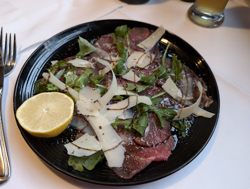 Read moreWir haben uns zu zweit zu einem Spontanbesuch entschieden. Trotz vollem Restaurants und fehlender Reservierung haben wir einen Platz bekommen. Allerdings draußen. Da das Wetter aktuell jedoch noch mitspielt, war das für uns kein Problem. Der Service ist freundlich, sehr bemüht und rasend schnell. Als Vorspeise hatten wir ein Carpaccio vom Wagyu-Rind - war in Ordnung. Zudem wurden Brot und diverse Dips gereicht, welche im Geschmack überzeugt haben. Von der beinahe täglich wechselnden Fleischkarte hat sich meine Partnerin ein Filet Mignon und ich mir das Bürgermeister-Stück ausgesucht. Geschmacklich spielten beide in der oberen Liga. Einzig die gewünschte Garstufe "medium-rare" bei meinem Stück wurde für mein Empfinden verfehlt, sodass es innen doch stark in Richtung bleu ging und stellenweise kalt war. Das beim Servieren gemachte Angebot, dass das Fleisch nochmal auf den Grill könne, wenn der Garpunkt nicht passe, nahm ich indes nicht an. Zu groß war der Appetit beim Anblick des Steaks. Die Beilagen waren mit Kartoffeln und Bohnen einigermaßen unspektakulär, hier liegt der Fokus eindeutig auf dem Fleisch. Geht in Ordnung, doch beim nächsten Mal sollte eventuell ein weniger verliebter Koch die Bohnen salzen. :) Nach dem Bezahlen wurde ungefragt noch ein Schnaps serviert. Im Hinblick auf Menschen, die keinen Alkohol trinken, sicher eine vorherige Frage wert. So wanderte der spendierte Ouzo leider in den Abfluss. Abgesehen von den erwähnten Kleinigkeiten, ein gelungener Abend und eine Rechtfertigung für einen...