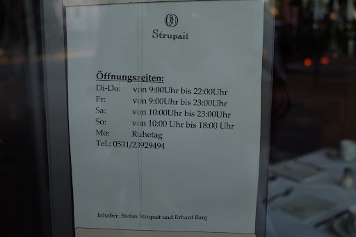 Das Personal ist immer freundlich und aufmerksam, was leider auch keine Selbstverständlichkeit mehr ist. Zu Beginn des Frühstücks wurden die "Spielregeln" erklärt. Die Gäste werden Tisch/Gruppenweise zum Büffet geführt, um Gedränge und langes Anstehen zu vermeiden. Das Vorgehen ist in der Coronazeit eingeführt worden und wird nun, trotz Lockerungen, weitergeführt. Meine Sorge war, als (natürlich) letzter Gast an ein abgegrastes Büffet vorgelassen zu werden. Daraus erwuchs die verständliche Reaktion Trotz. Die Sorge ist aber völlig unbegründet, was besonders an dem schon erwähnten aufmerkssamen Personal liegt. Das Büffet wird mit Argusaugen überwacht und aufgefüllt. Somit ist alles stehts frisch und hübsch anzusehen. Die angebotenen Speisen sind durch die Bank von guter Qualität und werden auf kleinen Tellern angeboten. Warum vier Sterne? Wie oben schon erwähnt sind alle Speisen von guter Qualität und die Tatsache, dass sie NICHT auf riesigen Platten und großen Trögen stundenlang darauf warten, gegessen zu werden, führt dazu, dass die Wurst sich nicht vertrocknend gen Himmel krümmt, das Rührei nicht zu einem Klotz vertrocknet und der Käse wärend er auf dem Büffet liegt in die nächste Reifeklasse wechselt. Warum dann nicht fünf Sterne? Bei all dem Lob fehlte mir irgend eine Überraschung, etwas Besonderes. etwas was ich nicht auf unzähligen Büffetts vorher schon mal gesehen habe. Fazit: Das Strupait mach ein Büffet wie viele andere auch - nur viel, viel besser. Wer ein angenehmes Ambiente mit freundlicher, aufmerksamer und unaufgeregter Bedienung und qualitativ guten, frischen Speisen sucht, ist hier...