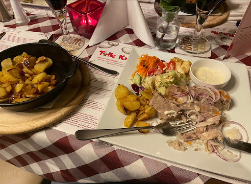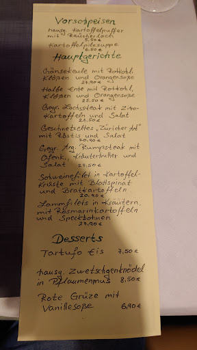 Read moreWir waren an den Weihnachtsfeiertagen da. Ich war hier vorher noch nie aber beim Blick auf die Karte im Internet war ich gespannt da die Gerichte sehr lecker klangen. Im Restaurant gab es an den Feiertagen dann eine Weihnachtskarte,was okay war aber nicht aufregend. Ich hatte die Medaillons mit Kartoffelkruste,Spinat und Bratkartoffeln. Leider war der Spinat komplett versalzen auch bei weiteren aus unserer Gruppe. Die Bratkartoffeln sahen leider wie ein Fertigprodukt aus und schmeckten auch so. Ohne besonderen Geschmack oder Gewürze. Mein Partner hatte das Geschnetzelte mit den Kartoffel-Rösti. Die 5 Rösti wirkten auf dem Teller sehr verloren,das Geschnetzelte gab es separat. Die Kartoffeln Rösti sahen ebenfalls nach Fertigprodukt aus. Irgendwie dachte ich, dass bei dem Namen des Restaurants die Kartoffelprodukte frisch zubereitet sind. War vielleicht mein Fehler. Davon ab war das Essen nix Besonderes und ungewürzt,bis auf den Spinat der versalzen war. Die Preise fand ich zu teuer für das was es gab. Bis auf die Klöße mit Rotkohl und Gänsekeule auf einem anderen...