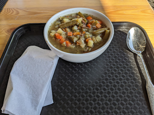 Read moreBesuch 23.07.2020. Eine der schlechtesten Gulaschsuppen meines Lebens! Die Gleichmäßigkeit der Gemüseeinlage lässt vermuten, dass es sich um eine Fertigsuppe handelt. Das angepriesene 100-prozentige Rindfleisch musste man mit der Lupe suchen. Das Brot wurde von der Dame an der Ausgabe mit bloßer Hand angefaßt und ohne Schutzhandschuhe auf den Teller gelegt. Ich konstatiere spontan, dass ich das nächste Mal lieber hungere, als mir dort eine (Gulasch)-Suppe zu holen. Über die Qualität der anderen Suppen kann ich nichts sagen. Außentische waren voll. 1 Stern nur, weil ich es sonst nicht...