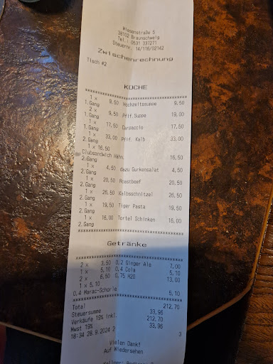 Das zu den vier Linden ist eine gemütliche Eckkneipe, in der man bei ungezwungener Atmosphäre sehr gut essen kann. Wir hatten im Zuge einer Familienfeier einen Tisch für fünf Personen reserviert und waren hinsichtlich des Services und dem Speisenangebot mehr als positiv überrascht. Die Inneneinrichtung ist zunächst so, wie man es sich in einer Eckkneipe vorstellt. Um die Theke mit Bierausschank sind viele kleinere (Holz-)Tische und Bänke zum Verweilen und Genießen vorhanden. In der Tat ist es daher ein wenig eng und Beinfreiheit ist etwas anderes (alle Personen unsererseits waren 1,80 und größer), aber absolut in Ordnung. Die sehr nette und aufmerksame Bedienung hat die Speisen und Getränke aufgenommen und uns auf Nachfrage auch mehrfach sehr frisches Baguette (mit Butter) gebracht. Da wir mit den Vorspeisen Hochzeitssuppe, Pfifferlingssuppe (Saisonangebot) und Carpaccio sowie den Hauptspeisen Pfifferlingskalbsschnitzel, Clubsandwich, Schinken Tortellini, Roastbeef und die Tiger Pasta (Bandnudeln mit Garnelen) einen großen Querschnitt der Karte bestellt hatten, können wir eine fundierte Bewertung zum Essenangebot und der Qualität machen. Die Karte bietet ansonsten auch Klassiker wie lose Wurst, Currywurst und Schnitzelvariationen. Die bestellten Speisen sind frisch und warm und gleichzeitg serviert wurden, was bei einer größeren Gruppe öfter ein Problem darstellt. Die Qualität hinsichtlich der eingesetzten Zutaten war gut und dem Preis angemessen. Geschmacklich waren wir sehr zufrieden, lediglich bei den Tortellini war durch den Schinken in der Sauce eine etwas leichte "Salznote" vorhanden, was aber insgesamt nur wenig den Geschmack trübte. Interessant war, dass die Hochzeitssuppe mit Rinderbrühe gefertigt wurde; wir kannten bisher nur die Variante mit Hühnerbrühe. Der Geschmack war dadurch interessant, neu und aus unserer Sicht sehr ausgewogen. Die Getränkepreise (Cola 0,4l und 0,4l Maracujaschorle mit jeweils 5,10 Euro) sind ggf. etwas überdurchschnittlich im zwischenbetrieblichen Vergleich, wobei eine 0,75 l Flasche Wasser (Magnus Imperial) mit 6,50 Euro dahingehend absolut im Rahmen lag. Hinisichlich der Preise liegt das "zu den vier Linden" in einem mittlerweile völlig üblichen Niveau in der Gastronomie. Die Tiger (Garnelen) Pasta schlugen z.B. mit 19,50 Euro, die Tortellini mit 16,00 Euro und das Kalbsschnitzel mit Pommes mit 26,50 Euro zu Buche. Das wirklich sehr große und schmackhafte Clubsandwich lag bei 16,50 Euro. Insgesamt belief sich die Rechung auf 212,70 Euro, die wir auf 220 Euro aufrundeten.