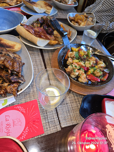 Read moreWar mit dem Motorrad unterwegs, da überkam mich der Hunger. Sah das La Rioja also rechts ran und rein ins Restaurant bzw. ich habe mich nach draußen gesetzt. Die Bedienung war sehr freundlich und auch schnell mit dem Tisch eindecken. Das Essen war auch sehr schnell fertig. Vorab gab es einen kleinen Snack um die Wartezeit auf das Essen zu verkürzen. Selbst Hergestelltes Brot mit einem Knoblauch Dipp. Der Burger war sehr gut, das Steak da drauf war durch und zart. Die dazu gehörigen Pommes waren der Hammer noch nie solche Schmackhaften Pommes wie die es hier gibt gegessen. Den 0,33ml Pfirsich Ice Tee fand ich gut aber 5,00 Euro ein wenig Übertrieben im Preis. Der Burger war kleiner als die ich so aus anderen Restaurants kenne für 15.50 Euro geht es aber, war laut Aussage der Karte 100g schwer (Steak). Der erste Eindruck war richtig gut, die Menschliche Bedürfnisanstallt war sauber und es hat angenehm gerochen. Der aussenplatz dafür hätte mal eine gute Reinigung bekommen können. Die Fenster und Fensterbänke hätte man vor Öffnung Reinigen müssen und einmal das Laub weg fegen sollen. Die aussenplätze waren von stellwänden umgeben die aus Glas waren. An diesen hingen Spinnweben mit den Bewohnern und deren Essen rum. Aber dafür war es innen Sauber und schön gemütlich eingerichtet. Werde auf jedenfall mal wieder...