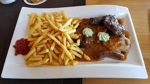 Read moreWir waren zum Weihnachtsessen mittags dort. Ich habe im Vorfeld telefonisch geklärt, was ich dort veganes zu essen bekommen kann. Mir wurden Grillgemüse und Rosmarinkartoffeln genannt. Naja, für 2023 ein ziemliches Armutszeugnis, auf der Weihnachtskarte stand regulär garnix veganes, und vegetarisch lediglich Kässpätzle. Auf dem Rest der Karte war auch kaum Gemüse zu finden. Dort angekommen habe ich mich auf mein Telefonat berufen, und zusätzlich einen Salat vom Buffet bestellt. lt Küche gibt es kein Grill Gemüse, aber sie könnten mir einen Salat anrichten mit gegrillten Champignons. Okay Dieser Salat war dann eine lächerliche Portion, die nur so im Dressing ersoffen ist und in meinen Champignons habe Ich Fleischreste gehabt (auf der Karte stand regulär ein Salat mit gegrillten Putenstreifen und Pilzen, hier wurde ganz klar der Grill nicht sauber gemacht, aber den Salat könne man mir ja vegan machen 🤣), verlangt wurde der selbe Preis, als wäre es der Salat mit Pute gewesen, 15,90€ absolut dreist. Ich hatte gefragt, ob die Dame die Rosmarinkartoffeln (reguläre Beilage zu fast allen anderen Hauptgerichten) mit aufgenommen hatte, darauf hin hab ich mehr mals zu hören bekommen, dass es heut doch kein Grillgemüse gäbe. Und der Kollege hätte am Telefon außerdem auch nie etwas davon gesagt. Also habe ich dann noch eine Portion Pommes für meine Sohn bestellt und wurde gefragt, ob ich Jetzt noch die Rosmarinkartoffeln wollte. An dem Punkt bin ich mir nur noch veräppelt vorgekommen. Der Rest der Gesellschaft hatte Zwiebelrostbraten, den Grillteller und Wiener Schnitzel. Von der Qualität war keines der Gerichte wirklich gut, die Preise dazu exorbitant. Leider das zweite negative Erlebnis in diesem Schuppen (erstes mal eine Hochzeitsfeier Anfang September, Essensqualität beide male schlecht). Und zu allem Überfluss ist der Spielplatz kurz vor dem zusammenbrechen. Der ist gefährlich und gehört mindestens abgesperrt. Schlechtes Essen, schlechter Service, Armutszeugnis für die Küche, reicht, wir kommen...