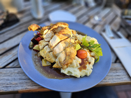 We both ordered a zucchini burger on hummus , as the only nice looking vegan option but it wasn’t what we expected. Hummus tasted like from the other vegan dish, stated curry lentil purée but the staff didn’t admit that they insisted that is “hummus”. When we asked the waitress to check what is inside she came back and told us there was honey in it which isn’t vegan.. that was our first and most concern beside the missing hummus, do not present something as a vegan dish if it isn’t fully vegan. But then she came back and said it was her mistake , there is no honey… it’s very unfortunate that the people serving food there are not aware what the food is made of or making up things, but definitely didnt seem trustworthy. Also , Some people can have allergy to the ingredients that aren’t listed.. Second thing, the misleading ‘bruschetta tomato’ as comes as part of the dish. Well there was no bruschetta at all but been told that the tomato is called bruschetta, there is no such thing as that , again. Seemed like someone created a good looking / sounding extremely overpriced dishes to make but behind there is lack of taste or even missing, mixed up ingredients. After I refused this dish got the other vegan option which was just even worse , over fried aubergine in guacamole as been told that the lentil purée contains curry too , what a surprise! 😉 If you wanna make vegan dishes is great but do it properly without misleading information and not only over fried vegetable with a salad.. for 17 euros is just simply outrageous. If I could I would give 0 star, but giving one star as we got discounts on our ordered food which weren’t representative to what it was written on...