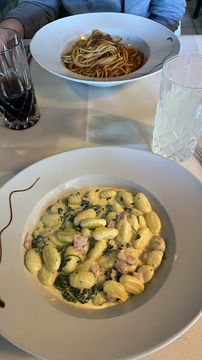Read moreWir hatten hier schon vor einiger Zeit einen Tisch zum Abendessen telefonisch reserviert. Vor Ort und nur im T-Shirt angekommen platzierte man uns draußen in einem offenen Zelt mit Heizpilzen, mit dem Kommentar, wir hätten ja nicht explizit drinnen einen Tisch bestellt. Unglaublich, so etwas haben wir bisher noch nie erlebt. Da es in Burg generell schwierig mit Gastronomie ist blieben wir aber. Es dauerte lange bis sich überhaupt jemand um uns kümmerte. Alles wirkte unkoordiniert, hektisch und sehr unpersönlich. Die hausgemachten Limonaden können wir hier nicht empfehlen, da es sich unserer Meinung nach für immerhin 6 Euro nur um eine eingefärbte dünne Plörre handelt. Meine Pizza 4 Seasons war gut belegt aber sehr wabbelig, bei der anderen Pizza mit Knoblauch und Scampis fehlte der Knoblauch. Auf Nachfrage wurde hier erklärt das ja die Scampis in Knoblauchsoße eingelegt waren. Nun ja, schmeckten wir nicht, aber dann gehört es auch nicht extra in die Beschreibung auf der Karte. Zwischenzeitlich ankommende Gäste ohne Reservierung durften wieder gehen, da angeblich kein Platz mehr war. Komisch, wir sahen das irgendwie anders.. Unser Fazit: Es gibt in Burg leider nicht allzuviel Konkurrenz was die Gastro betrifft, aber hierher kommen wir mit...