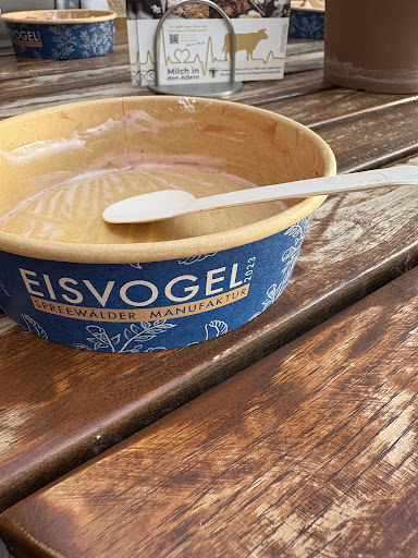 Dem Lob der anderen Besucher des Eiscafés zum Geschmack des Eises kann ich mich nur anschließen. Einen faden Beigeschmack hinterließ unser Besuch aber doch: wir saßen auf der Terrasse und wurden bedient. Überraschender Weise erhielten wir unsere Früchteeisbecher in einem Pappbehälter inclusive einem Papplöffel. Was ist das denn für eine Café-Kultur? Neben diesem Kulturschock blieb auch die Feststellung, dass das Eis (also die Eisbecher) im online-Bestellsystem in Glasbehältern bzw. Keramik/Porzellan präsentiert wird. Sofort stellten wir uns vor, welche Berge an Abfall im Café Eisvogel jeden Tag produziert werden. Und das im Spreewald, der mit Biosphäre und Umweltfreundlichkeit wirbt. Hier sehe ich erheblichen Änderungsbedarf. Bei Preisen pro Becher um die 10 Euro erwarte ich ein anderes Niveau bei der Bedienung.