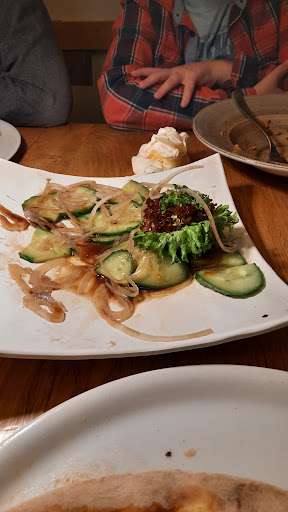 Unser Besuch begann schon mit einem äußerst unfreundlichen und rüpelhaften Empfang durch einen übellaunigen und sehr unmotivierten Mitarbeiter. Wir hatten das Gefühl, als ob wir stören würden. Obwohl wir bereits eine Woche zuvor reserviert hatten, wurde uns einer der schlechtesten Tische zugewiesen (am Nebentisch fand soeben ein lärmender Kindergeburtstag statt, sodass man das eigene Wort nicht mehr verstehen konnte). Der Wunsch nach einem anderen Tisch wurde nur widerwilligst erfüllt, obwohl mehr als die Hälfte der Tische frei war. Nachdem wir die Speisekarte erhalten hatten, wurden wir einfach nicht mehr beachtet. Während unserer unendlichen Wartezeit hatten wir Gelegenheit, festzustellen, dass die Tischplatte klebrig und unsauber war und es am - für ein italienisches Restaurant typischen „coperto“ - mangelte. Erst nachdem wir einen der übellaunigen Kellner in italienischer Sprache überreden konnten, nahm er widerwilligst die Bestellung auf. Die verwässerten Getränke wurden dafür rasch auf den Tisch geknallt. Kurze Zeit später kam der bestellte Gurkensalat (siehe Foto). Zu dieser Speise enthalten wir uns lieber jeglichen Kommentars. Das Nudelgericht, das nach einer halben Ewigkeit serviert wurde, enthielt Kräuter, die weder frisch, noch getrocknet sondern einfach nur eklig waren. Es wurde kein - wie bei italienischen Nudelgerichten üblich - Parmesan serviert. Als der „nette“ Kellner die Pizzen servierte, zählte er irgendwelche Pizzen auf, die wir nicht bestellt hatten und wusste auch nicht, welche er gerade in der Hand hielt. Mit einer der Pizzen ging er wieder davon, um in der Karte nachzusehen und ein paar einsame, kalte Sardellen daraufzulegen. Meine Pizza hatte somit dreimal das gesamte Lokal durchquert, bevor sie mir schließlich kommentarlos vor die Nase geknallt wurde. Nun zu den Pizzen selbst: Wenn dies unsere ersten Pizzen gewesen wären, hätten wir nie wieder eine Pizza angerührt. Das, was hier als Pizza serviert wird, ist eine Beleidigung für das italienische Nationalgericht!!! ( die Tomatensoße muss man mit einer Lupe suchen, von Mozzarella hat man hier noch nie gehört und die drei einsamen Scheiben Salami waren eigentlich nicht als Salami identifizierbar; bei einer der Pizzen wurde der minimale Lachsanteil von einem halben, verwelkten Rucolabeet überdeckt). Der Pizzaboden selbst war hauchdünn wie Strudelteig (vermutlich versucht man hier zu sparen…), zäh und kaum zu schneiden. Den Rand vermag sogar das schärfste Pizzamesser nicht kleinzukriegen. Einfach scheußlich! Da wir nach diesen wundervollen Hauptspeisen keinen Wunsch nach einem Dessert verspürten, verlangten wir nach der Rechnung. Mit Blick auf unsere noch gut gefüllten Teller wurden wir ernsthaft gefragt, ob alles gut war. Wir sind auf diese Frage nicht eingegangen, da wir nur noch auf dem schnellsten Wege dieses „hervorragende“ Lokal verlassen wollten. Als wir uns das Restgeld auf den Cent genau herausgeben ließen, war die Verwirrung sichtlich groß. Anscheinend konnte das Personal unsere Unzufriedenheit in keiner Weise nachvollziehen. Ein Stern ist...