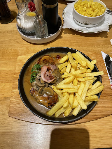 Wir gehen immer sehr gerne dorthin. Bedienung ist sehr freundlich, das Essen gut und reichlich. Was ich schade finde dass manche Speisen sehr teuer sind. Ich z.B esse grundsätzlich, egal wo ich hinkomme Zwiebelrostbraten. Der kostet 30 € (60 DM).. Bin vom alten Schlag und rechne immer noch um. Vor kurzem habe ich in einem anderen Lokal 24 € gezahlt und das war mir fast schon zu teuer. Ich habe daraufhin ein Cordon bleu gegessen ( 16,20 €,), da muss ich dazu sagen dass es super lecker und reichlich war. Die Lokalität ist sehr schön, hatte nur einmal Pech dass wir einen Tisch in der Nähe der Tür hatten ( Aschermittwoch) und im Gastraum richtig kalt war. Haben auch die anderen Gäste so empfunden. War aber eine einmalige Sache, ich kann das Gasthaus empfehlen, wir und unsere Bekannten werden weiterhin dorthin gehen. Einziger Wermutstropfen dass ich meinen heißgeliebten Zwiebelrostbraten nicht mehr essen...
