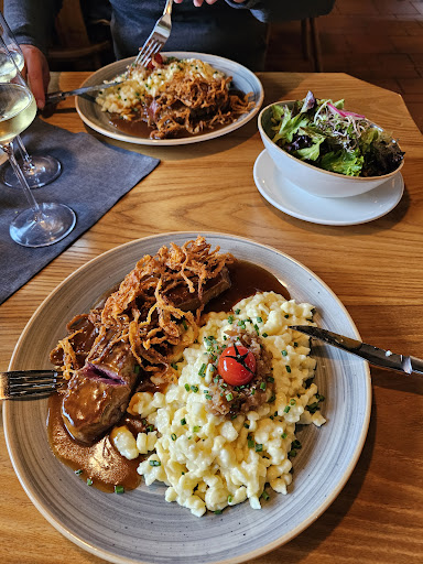 Read moreselten habe ich so einen unglaublich guten Service erlebt. aufmerksam aber nicht aufdringlich, höflich aber nicht aufgesetzt, auf den Punkt aber nicht drüber. Essen, Trinken, service - einfach alles einfach auf den Punkt. Super hunde freundlich 🐕, kamen sofort mit einem Wasserdampf für unseren zwerg am Tisch ohne danach fragen zu müssen. Schon am Telefon als wir angerufen haben ob wir einen Tisch mit hund haben könnten, wurde uns schon gesagt das wir den zwerg sehr gern mitnehmen könnten und sie sehen danach das nicht gleich am nächsten Tisch ebenfalls ein Hund sitzt. einfach perfekt. Essen (zwiebelrostbraten mit käsespätzle), kleiner gemischter Salat, apfelkücherl mit Eis- alles einfach super lecker 😋 und wen man hier herkommt, unbedingt den Pinot Gris trinken - ein Traum wein!!!! Uns hat Viktor bedient und er war einfach hervorragend! Danke das Ihr uns diesen Abend soooo schön gemacht habt!!! Ihr...