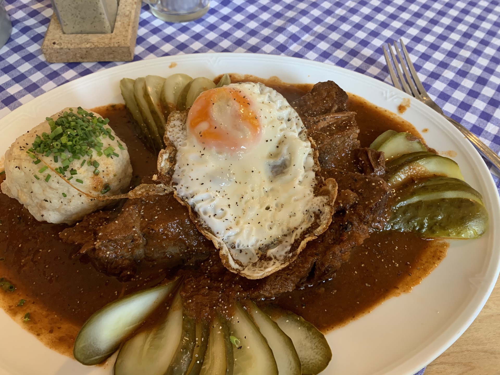 Das ganze Desaster begann schon damit, dass wir als angekündigte Gesellschaft da waren. Man möchte meinen, das erlaubt eine gewisse Planung - aber weit gefehlt. Die eine Hälfte von uns hatte mehr oder weniger noch Glück, denn sie bekam eigentlich alles recht zügig. Die zweite Hälfte am zweiten Tisch musste sich über eine dreiviertel Stunde gedulden, bevor wir überhaupt Getränke bestellen konnten. Bevor uns diese nach mehr als einer Stunde erreicht haben, konnten einige andere schon mit der Suppe beginnen. Leider waren wir dann auch in Punkto Essen benachteiligt. Schweinebraten und Ente waren aus. Peinlicherweise musste die Servicekraft sogar wiederkommen um zu fragen, wer denn auf seine Ente verzichten möchte. Beim Servieren des Essens gab es dementsprechend auch große zeitliche Differenzen, so dass ein Teil von uns noch nicht einmal anfangen konnte, obwohl andere schon fertig waren. Davon, dass die Beilagensalate erst geliefert wurden, als nur noch wenige Happen auf dem Teller der Hauptspeise lagen, wollen wir mal gar nicht anfangen. Diese nicht gerade aufwändigen Tellerchen haben wir übrigens auch nur auf Nachfrage noch erhalten. Beim Nachtisch ging der Spaß dann weiter. Apfelküchlein mit Vanielleeis oder Mousse au Chocolat mit Glühweinzwetschgen stand laut Karte zur Wahl. Aber kurz nach der Bestellung kam sie Servicekraft auch schon wieder zurück und meldete, dass auch die Apfelküchlein nicht mehr da sind. Glühweinzwetschgen bekamen leider auch nicht mehr alle von uns - in einigen Fallen waren plötzlich Kirschen die Beilage. Darüber war man aber auch nicht informiert worden. Kurzum: die Kalkulation war völlig daneben, was bei einer angemeldeten Gruppe nicht passieren sollte. Zum Abschluss noch ein Wort zum Service. Mir ist völlig klar, dass der Ausfall von elektronischen Helfern jemanden ins Schleudern bringen kann. ABER. Wenn auf der Speisekarte nur 2 Rotweine stehen, sollte es nicht zuviel verlangt sein, dass man das nicht erst nachweisen muss, wenn man eben nicht den Zweigelt nimmt. Darüber hinaus war eine der jungen Damen mit Zuhören und Eintippen offensichtlich überfordert. So mussten wir mehrmals kontrollieren, ob das Bestellte denn nun auch wirklich in ihrem Gerät (das war dann das zweite, das angeblich funktioniert) gelandet war. Wie sich herausstellte, war das nur bedingt der Fall. Obwohl die Getränke später am Abend zügiger kamen, schlich sich dann wiederholt der Fehlerteufel ein, so dass wir mehrmals gefragt wurden, ob denn dieses und jenes Getränk, das eine der Damen gerade herantrug, auch akzeptabel seien. Verwechslungen wie Cola und Spezi inklusive. Zu guter Letzt sei noch erwähnt, dass ich es grenzwertig finde, wenn man Gäste, die doch schon die 50 deutlich überschritten haben und die sich trotz Hunger, Durst und Enttäuschung bemühen, höflich zu der überforderten Kellnerin zu sein, einfach duzt. Wenn wir uns um das Sie bemühen, ist das doch von ihr auch nicht zuviel verlangt. Bayerisch/österreichische Gemütlichkeit hin oder her, in diesem Moment war das nicht angebracht. Falls irgendjemand, außer vielleicht der Inhaber, bis hierher gelesen haben sollte: der einzige Grund, warum ich nicht nur einen Stern, sondern sogar 2 vergebe, ist, dass das Essen, das wir letztlich bekommen haben, dann tatsächlich wirklich gut...