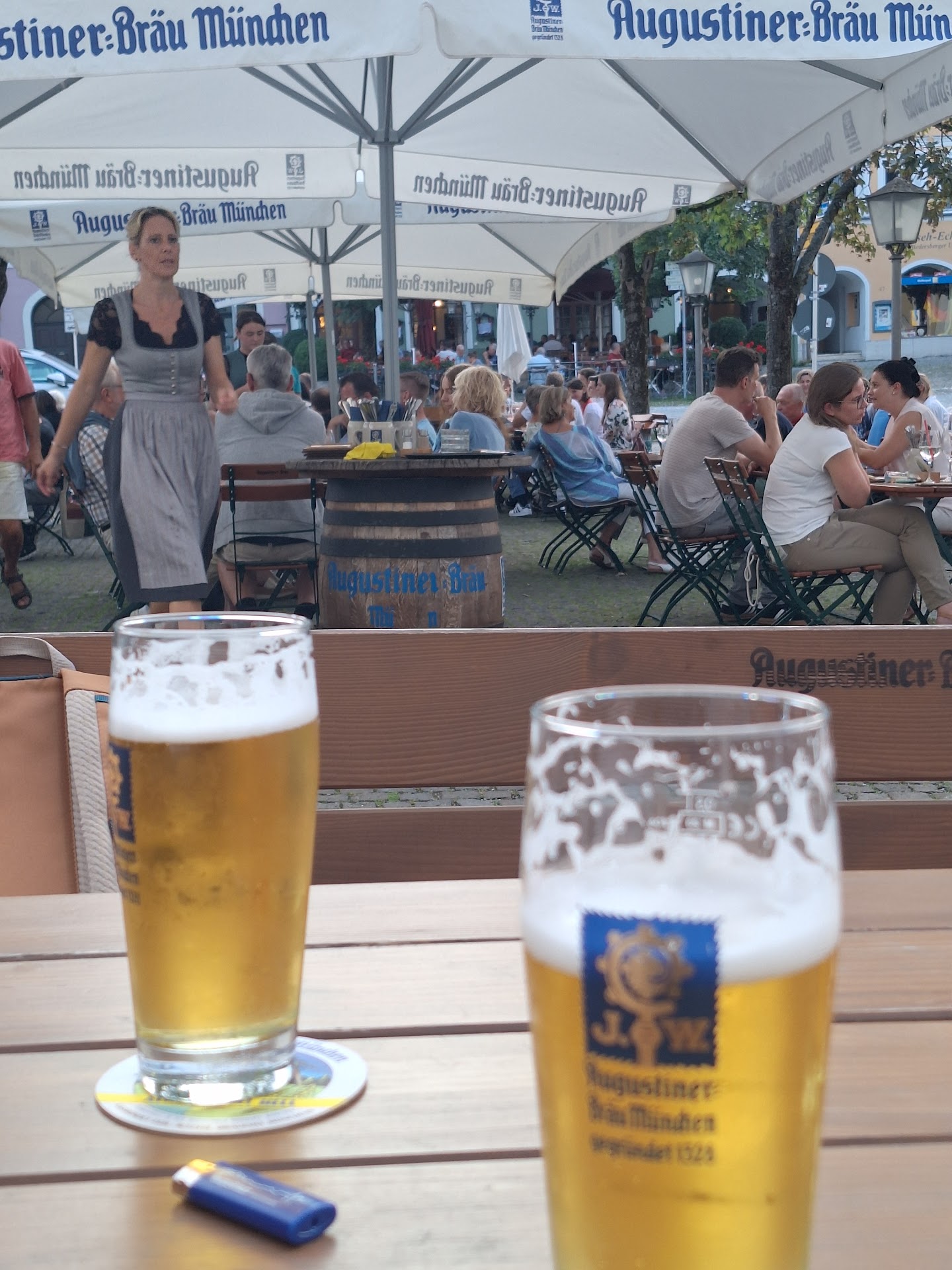 Read moreWir kamen zum Bier und Essen und baten die Kellnerin zu Beginn, ob sie bitte die Sonnenschirme aufspannen könne, da es zu regnen begann. Sie tat so, als wäre das eine riesige Anstrengung, und sagte nur, dass wir in einer Stunde hereinkommen könnten, wenn ein Tisch frei werde. Der Regen wurde immer stärker, also öffneten wir schließlich selbst die Sonnenschirme – gemeinsam mit dem Nachbartisch. Die Kellnerinnen kommentierten nichts und boten keinerlei Hilfe an.