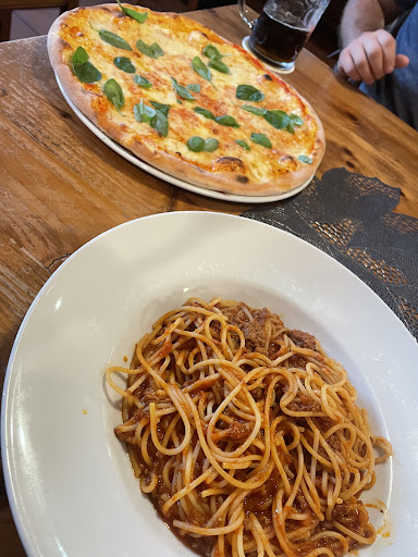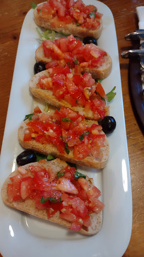 I want to love this place so badly. I do... but I just can't. The location is great, there's about 4 parking spots reserved behind the restaurant, and plenty of seating. The food is a hit or miss. That's what bothers me. I have eaten here 3 times and every time it's a different experience. Today i ordered green tea, they were out. They didn't have the most basic tea (in my mind), but ok, I'll take still water. Then I ordered Bruscetta, 4,80€ for 4 slices, delicious, this was my highlight of the night. Fresh tomatoes, crunchy but moist toast, and well-seasoned topping. Then for my main course I ordered the tagliatelle diosano (?) And I was too salty. The flavor was there but it was so salty I only are about a third. My husband ordered pizza tono and added salami, this was good.