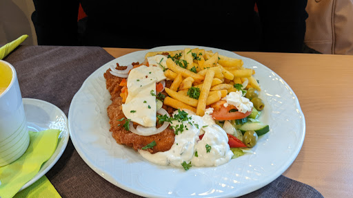 Die Gaststätte wirkt, von außen , sehr klein , eher wie ein Sportlerheim aus DDR-Tagen . Aber innen erschließt sich erst die wahre Größe . Die Gaststätte war prasselvoll . Angesichts der vielen Gäste war das Essen , relativ , schnell auf dem Tisch . Geschmekt hat es auch noch . Nur die Heimfahrt , nach Navi , war ein Reinfall . Und plötzlich war die Straße , mit 2 Pfosten im Boden , gesperrt ! Also rückwärts bis zur nächsten Wendemöglichket . Ob das so legal ist ? Ich bezweifle das ! Ich komme trotzdem gerne wieder . P.S. Seit mehreren Jahren wird Zuchtlachs als das ungesündeste Lebenmittel der Welt "ausgezeichnet " . Wer in Norwegen , einmal unter so einem Fischnetz tauchen war , weiss warum dieser Fisch " ausgezeichnet " wird . Ab hier ist es NEU !! Ich war wieder einmal , in Begleitung , zum Essen dort . Alle haben sich ein Steak bestellt . 3 Leute haben es stillschweigend gegessen , nur eine junge Frau stellte diese Frage in die Runde : Wo ist die Ferkelzucht ? Zum satt werden war das nichts . Das es geschmacklich gut war ändert nicht an er Tatsache , dass wir alle , bei mir , erst einmal zu Abend gegessen haben um satt zu werden . Schade um die...