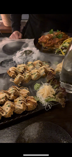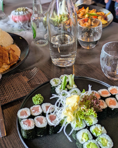 Ein besonderes Detail: Beim Servieren wird Trockeneis auf den Tisch gestellt, wodurch ein leichter Nebeleffekt entsteht. Das sorgt für eine interessante Atmosphäre und hebt das Essen optisch hervor.