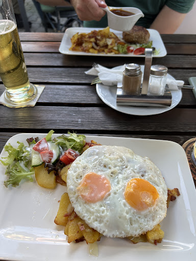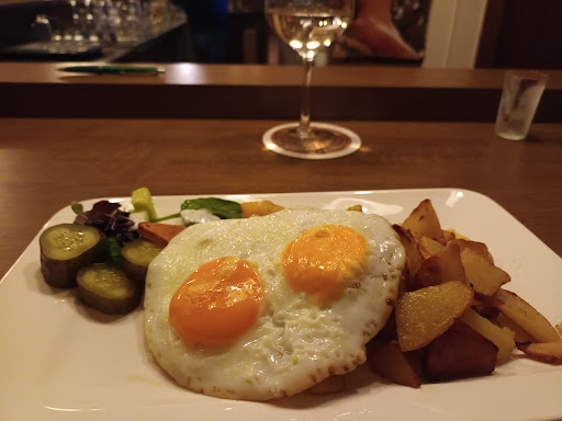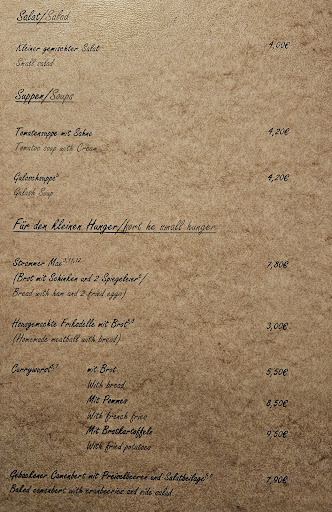 Naja. Geht so. Schöner Tresen, u. a. Pils von Härke und Königs (0,5 l für 3,50€) - frisch, süffig und kalt; das Interieur etwas karg sonst, rustikal aber trotzdem ungemütlich (trübe Beleuchtung, lieblose Tischaufstellung um die Toilettentür herum, schlecht beheizt). Essen ist mittelmäßig; Schnitzel etwas zäh und eher teuer (je nach Ausführung 12€ oder 13€ mit Bratkartoffeln); meine Empfehlung hier: Bratkartoffeln mit Spiegelei - und da am besten gleich drei Eier (6,80€); und zum „internationalen Preisvergleich“: Currywurst mit Pommes kostet 6,20€.