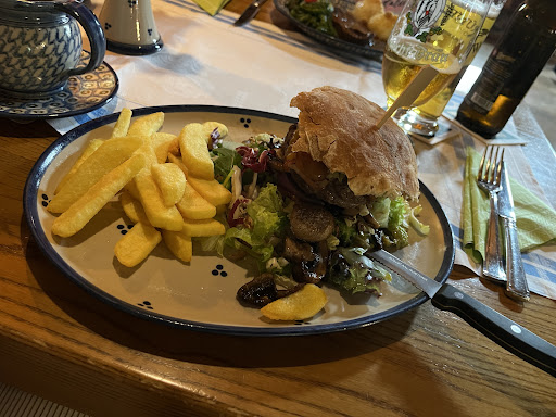 Wir haben hinter der Scheune auf der sehr einladenden Sommer Terrasse mit einem herrlichen Blick in die Natur gesessen. Absolut Top! Leider ging es mit dem Service nur sehr mäßig weiter: die Wartezeiten waren sehr (!) lang. Wir haben glatte 20 Minuten auf unsere Getränke gewartet…die Vorspeisen (eine Suppe, Garnelen) kamen erst nach 60 Minuten. Immerhin wurde das Kindergericht schon serviert (auf Nachfrage).