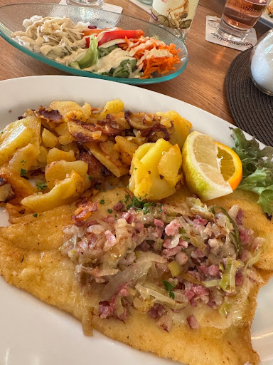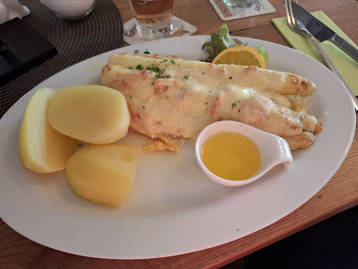 Read moreVorweg das Essen war super lecker, ich hatte Spargel mal anders - sehr lecker. Wir hatten uns einen Tisch reserviert, um nach der langen Anreise nichts kochen zu müssen. Wir haben keinen bekommen. Uns wurden dann 2 Tische zusammengestellt direkt an der Theke, im Durchgang zu Küche und Toilette. Trotz leerer Tische, und unserer Nachfrage ob wir uns umsetzen können, die angeblich Reserviert waren, wurde dies abgelehnt. Bis wir gegangen sind war ein Tisch immer noch fre und das Restaurant geschlossen hat. Das permanent überforderte Personal im Genick, sie schimpften permanent das alles nicht klappt, kamen mit den Reservierungen und Gästen nicht zurecht. Zudem kamen auch öfter genervte Gäste zum bezahlen oder bestellen. Die 3x Mädels waren entweder "Blutjung" im Service oder brauchen nochmal etwas Anleitung. Bis wir die Getränke bestellen konnten verging über halbe Stunde, Essen erst 1h Stunde später, wir saßen dann schon auf dem trockenen. Trotz der Theken Nähe wurden wir nicht gefragt ob wir noch etwas möchten, es wurde einfach vorbei gelaufen. Auch die leeren Teller wurden nicht abgeräumt, dafür wurde der Nebenbarraum schon komplett abgeräumt mit Tischdecken ect. Ich war auch im Service tätig, das geht gar nicht. Immer zuerst der Gast, zumindest mal nachgefragt. Aufgeräumt wenn nix mehr zu tun ist. Essen Topp -...