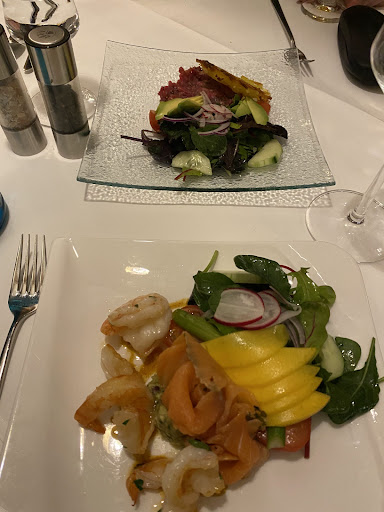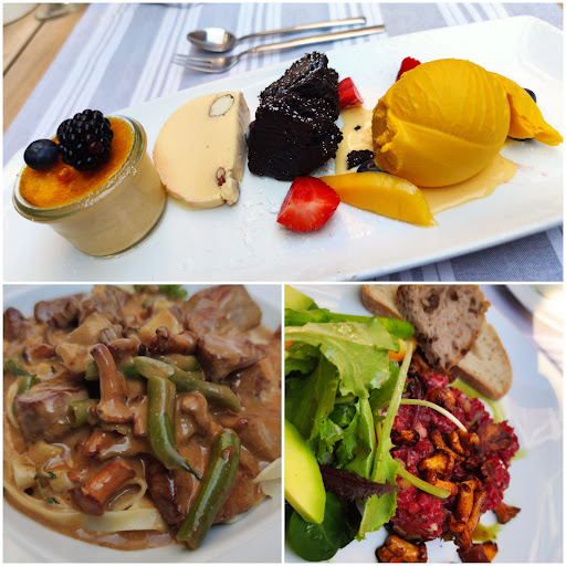 Read moreDer Service ist unaufmerksam und schlecht gekleidet. Grauer ausgewaschener Pulli und Bluse macht nicht viel her. Lange Wartezeiten fürs Essen runden den schechten Service ab. Es wurde nicht gefragt ob mit dem Essen alles in Ordnung war oder abgeräumt werden darf. Es wurde der Nachspeisenteller obwohl noch was drauf war einfach abgeräumt. Das Essen interessant. Mein Steak war 2 cm breit und hoch sowie 16 cm lang. Keine Gewichtsangaben zum Steak in der Speisekarke und somit wohl eher eine Mogelpackung für 24,90 €.Dazu gab es viel frischen Salat und eine Bratensauce in einem Kännchen. Bratensauce zum Steak sehr ungewöhnlich zumal die Bratensauce kalt und versalzen war. Ein schmutziger Löffel der zum Nachtisch gereicht wurde machte den Abend nicht schöner. Das Preisleistungsverhältnis stimmt hinten und...