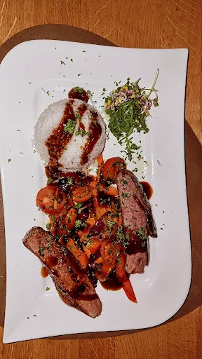 Die Speisekarte ist eine Mischung aus rustikalen, traditionellen Speisen mit einer Anerkennung moderner Ernährungstrends, wie die Integration von Bowls sowie veganen und vegetarischen Optionen zeigt. Trotz dieser modernen Anklänge bleibt die kulinarische Darbietung geschmacklich hinter den Erwartungen zurück. Die Gerichte, obwohl zufriedenstellend, hinterlassen keinen bleibenden Eindruck, und die Anrichtung, obwohl bemüht ästhetisch, ist letztendlich zu einfach, um wirklich zu überzeugen. Die Preisgestaltung wirkt unangemessen, insbesondere bei Gerichten wie einem simplen Salat mit etwas gebratenen Tofu oder einer einzelnen Kugel Eis it ein wenig Crumble, die unverhältnismäßig hoch angesetzt sind.