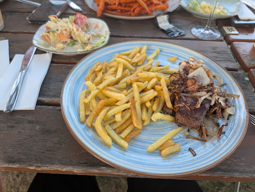 Read moreEtwas außerhalb, aber der Weg lohnt sich! Wir hatten Cordon Bleu und Schnitzel mit Pilzrahm-Sauce. Als Beilage Pommes Frites. Die Pommes Frites waren super frisch und super heiß. Die Füllung vom Cordon Bleu war reichlich und sehr saftig. Das Fleisch der Schnitzel war dicker, als man es in anderen Restaurants gewohnt ist. Dies tat der Gaumenfreude keinen Abbruch. Das Schnitzel war zart, saftig und gut zu schneiden (und kauen). Man hatte im Vorfeld bereits gehört, wie das Fleisch in der Küche geklopft wurde. Zu dem Cordon Bleu und den Schnitzeln wird vorab ein Salat gereicht. Da die Portionen unsere Mageninhalte überstiegen hatte, wurden wir direkt gefragt, ob wir die Reste mitnehmen möchten. Das Ambiente ist gut und durch den Flugplatz geprägt. Alles in allem eine...