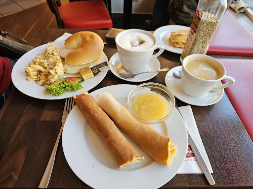 Auf der Durchreise sind wir hier eingekehrt. Wollten nur kurz frĂŒhstĂŒcken. Man kommt hier aber in eine kleine heile Welt, wo man mit Ruhe bedient wird, ohne zu bummeln. Wir wurden nett beraten, bekamen die Plinsen warm gemacht. Andere GĂ€ste wurden mit Namen begrĂŒĂt oder verabschiedet. Das Personal untereinander war freundlich und hilfsbereit und so ging man auch mit der Kundschaft um. Alles war sauber, die Tische, das Geschirr, die Toiletten. Man sitzt seitlich im Raum vom Verkaufstresen, so dass man von dort separiert in Ruhe essen kann. Wir werden auf dem RĂŒckweg wieder hier einkehren und in die friedliche Morgenroutine dieser niedlichen...
