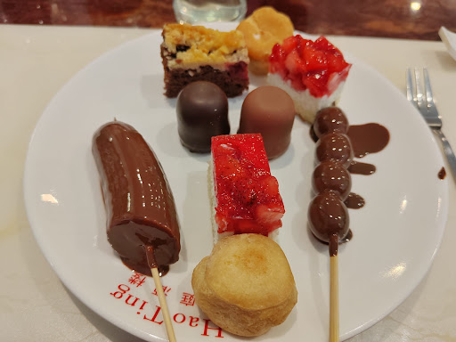 3 Sterne für die Frische der Speisen - Wir kamen um 12:00 an einem Freitag - Das Buffet war frisch und (über)reichlich aufgefüllt - alle Schalen bis zum obersten Rand voll. Erste Runde - TipTop - Zweite Runde - Ok - Dritte Runde - so gegen 13:00 - eher Flop. Es lag immer noch genau das gleiche wie um 12:00 in den Schalen - von allem halt etwas weniger aber immer noch das gleiche. Heiß aber - das knusprige Hühnchen war lbabriges Huhn geworden, die Nudeln pappten klebrig zusammen, das Rindfleisch mit Zwiebeln war furztrocken und zäh, die Nuggets matschig und die Frühlingsrollen pappig weich. Hier sollte anfangs weniger gemacht und dafür dann im 15-30 Minuten Takt oder nach Bedarf frisch nach gekocht werden. So war es ab 12:45/13:00 für neue Gäste ziemlich enttäuschend und auch Gäste die ab 12:00 da waren greifen dann nur noch zum Nachtisch nichtmehr zum warmen essen - das war wirklich nicht mehr einladend.
