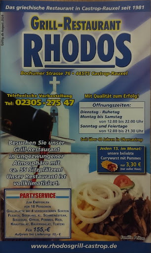 Ich war wĂ€hrend eines mehrwöchigen geschĂ€ftlichen Aufenthalts in Castrop regelmĂ€Ăig im Restaurant Rhodos â und habe dort stets einen angenehmen, gastfreundlichen Ausklang meines Arbeitstags gefunden. Schon beim Eintreten fĂŒhlt man sich willkommen, geschĂ€tzt und fast wie zu Hause.