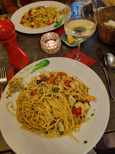 Read moreAlso ich kann es beim besten Willen nicht zu 100 % empfehlen. Zu den Gründen: Innenausstattung Ok, Sauberkeit soweit ich sehen konnte ok. Pizzabrötchen waren ungewöhnlich, eher zu beschreiben in Richtung Steinofenbrot, Kalt, Hart nicht Knusprig und geschmacklich nicht gut. Das war die erste Enttäuschung. Zwei verschiedene Butterarten, eins war Kräuterbutter, diese war krümelig und Hart, somit konnte man es nicht aufs Brot schmieren. Die Vorspeise Garnelen in Öl mit Kräutern etc. war für ca. 13 € ein Witz. Keine 100 g auf einem Riesenteller, geschmacklich ok, mehr aber auch nicht. Die Pizzen waren gut, etwas wenig gewürzt, Salz fehlte auch. Der Pizzaboden war Dünn, in Richtung neapoletanisch zu beschreiben. Leider war mein Boden ziemlich verbrannt. Im Großen und Ganzen waren wir etwas enttäuscht, da der Geschmack für einen guten Italiener nicht gegeben war. Für die angegebene Preiskategorie müsste es besser schmecken. Der Service war ok, es kam kein negatives und auch kein positives Gefühl auf. Getränke finde ich sehr teuer, Cola könnte bei dem Preis ruhig 0,3 Liter sein, mit 0,2 Liter etwas zu teuer aus...
