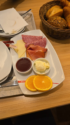 Fine bakery with good pastries and very nice bread to take home or eat there on the spot...can sometimes be a little crowded but patience is clean biz...in the summer there is a small terrace outside but inside and on the 1st floor they have enough sitting space...free customer toilet on the 1st...all in all good bakery that is worth visiting for a snack some pastries or just the daily bread they know...