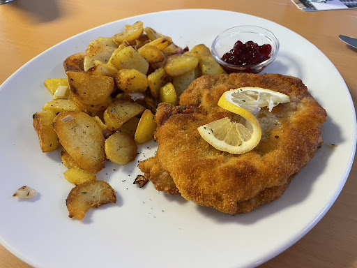 Read moreBei mir gab es Kaffee und Kuchen. Beides sehr lecker und mit guter Größe. Der Laden wirkt familiär geführt. Die Einrichtung ist recht rustikal und könnte meines Empfindens nach stilistisch gemütlicher gestaltet werden. Die Stühle drinnen habe ich aber als bequem empfunden. Die sehr junge Bedienung konnte mir nicht direkt sagen was für Torte ich da vor mir sehe und kaufen kann, aber da ich den Käsekuchen erspäht habe ging es auch ohne Beratung. Eventuell ist er in der Ausbildung. Es gibt viele Plätze drinnen und draußen. EC-Zahlung...