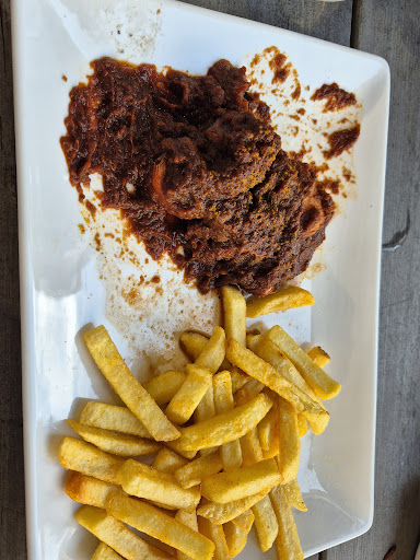Die Currysoße war hervorragend gewürzt, die Bratwurst frisch und geschmacklich sehr gut und die Pommes waren perfekt frittiert – weder zu kurz noch zu lang. Besonders positiv hervorzuheben ist die hausgemachte Mayonnaise, die wir dazu bestellt haben: schön cremig, nicht zu dominant im Geschmack und genau richtig gewürzt und auch nicht zu "schwer".