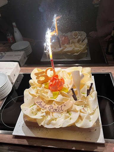 Read moreHab meine Geburtstagstorte hier bestellt. Im groben und ganzen bin ich zufrieden (hab noch nicht probiert). Aber es wurde Teilweise sehr unsauber bearbeitet, und auch ein paar Details vergessen. Die Sterne waren zu groß und beim Gelb war noch grün mit drinnen. Eine Zacke bei einem Stern ist abgebrochen. Ich wollte eine Geburtstagsschrift, die auf dem Referenzbild drauf war, aber einfach nicht da ist. Die Deko oben drauf wurde mit weißer, anstatt bunter, jeweils passender Farbe zusammengeklebt. Eine kleine Deko fehlt noch, aber das war jetzt nicht so schlimm. Was ich hier jetzt geschrieben habe ist alles nicht so wild, aber ich bin ein sehr perfektionistischer Mensch, wenn es um Kuchen geht. Besonders, bei denen, die von etwas inspiriert sind und genauso aussehen sollen, wie das, was es...